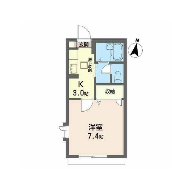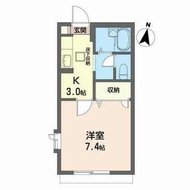 | 間取り | 1K(K3.0帖 洋室7.4帖) | 主要採光面 | 南 |