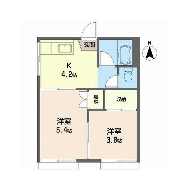 | 間取り | 2K(K4.2帖 洋室5.4帖 洋室3.8帖) | 主要採光面 | 南 |